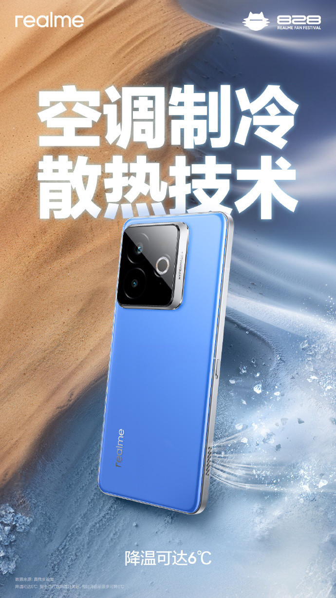 真我还推出“空调制冷”手机散热系统,带来全球首台内置“空调”的性能旗舰。据官方介绍,这是全球唯一一台散热系统三合一的智能手机,可一键至高降低手机温度6℃。据称,该机配备了7700mm²超大单体VC被动散热片、内置主动散热风扇、TEC制冷元件全新固态制冷方式手机内侧直接制冷的主动制冷技术。