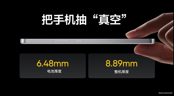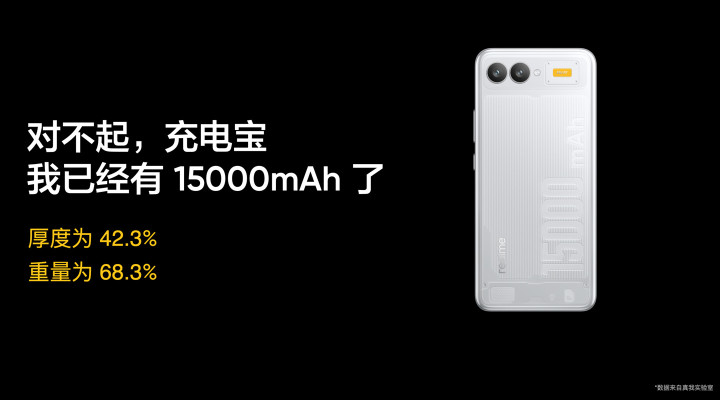 根据官方在828真粉节上的介绍来看,真我15000mAh概念手机采用了全球首款100%硅负极电池,容量更大,电池更轻薄;电池能量密度达到1200Wh / L,为传统硅碳负极电池的1.3倍以上;电池厚度6.48mm,机身厚度仍控制在8.89mm,通过创新的迷你钻石结构,将主板宽度压缩至23.4mm,创下安卓阵营最窄主板纪录。这其实也让不少此前的爆料者大跌眼镜,内置了比目前大多数市售手机大几倍电池的手机,厚度却与目前市售手机的厚度差不多,这确实也相当彰显技术实力了。